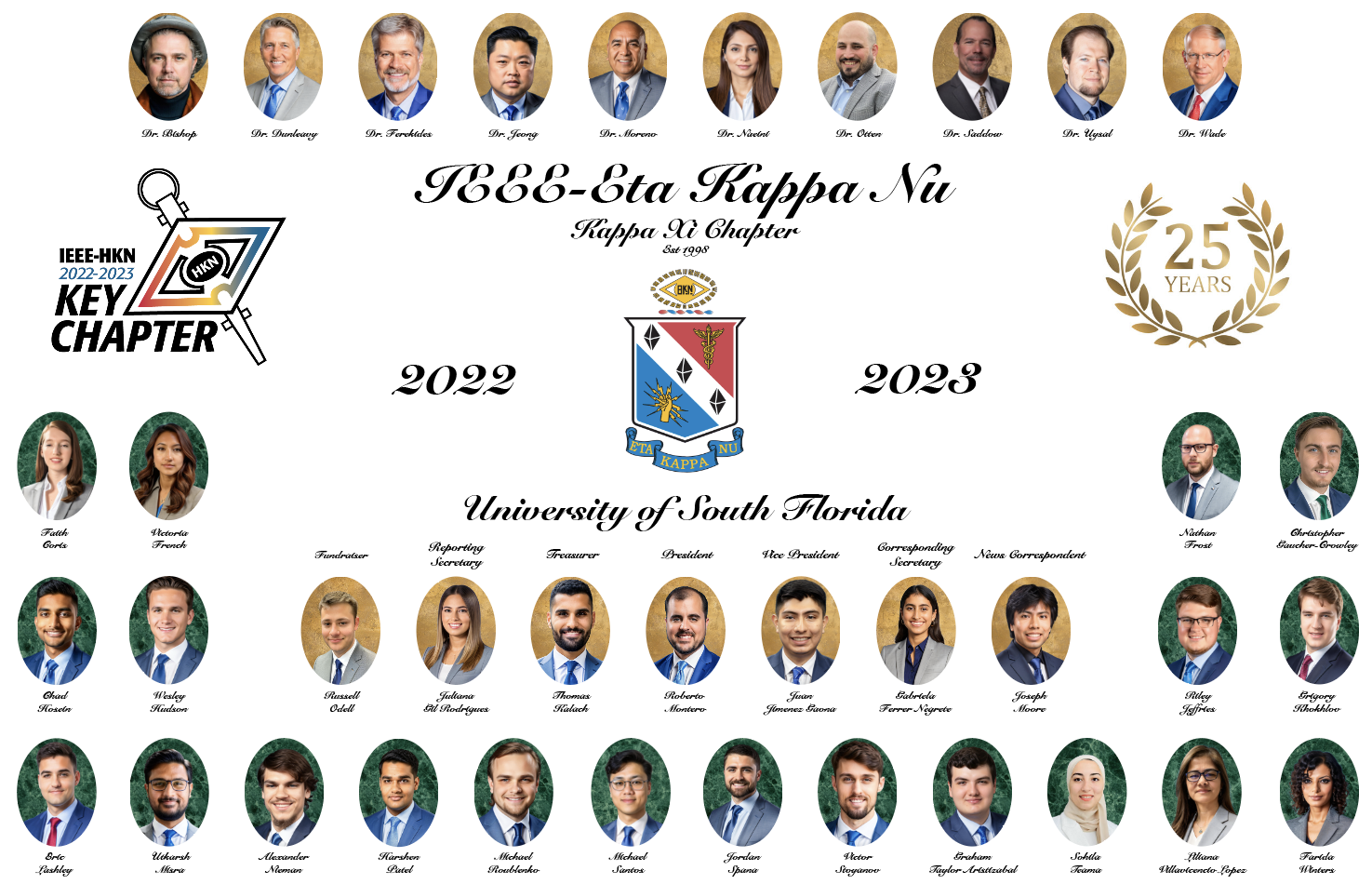 Welcome to the University of South Florida's Kappa Xi Chapter of Eta Kappa Nu, the honor society of the Institute of Electrical and Electronics Engineers (IEEE). Established on April 25, 1998, under Dr. Thomas Wade's guidance, our chapter has a legacy of fostering excellence in electrical and electronic engineering.